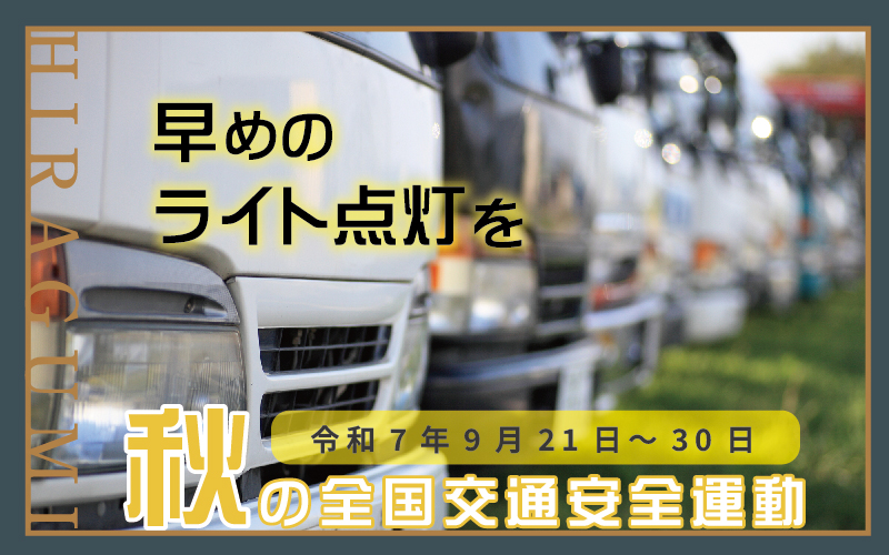9月に入り、だんだんと日の入りが早くなってきたように感じます。秋の日は釣瓶落としといわれるように、急に暗くなります。この時期は交通事故が多くなるようで、今月9月21日(日)から30日(火)までの10日間は秋の全国交通安全運動期間になっています。